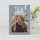 un guión moderno de tipografía limpia y Moda con un marco fotográfico arcaico sobre un polvoriento fondo de color azul. Fácilmente personalizar con tus fotos de graduación y detalles de invitación en la parte delantera y trasera.