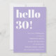 Esta invitación moderna para el cumpleaños número 30 en púrpura lavanda y blanco presenta una tipografía en negrita y una paleta de colores suave y elevada que se siente intencional y pulida. La limpia disposición destaca el hito mientras mantiene el aspecto general simple y contemporáneo. Ideal para cenas, reuniones en el jardín o celebraciones nocturnas con amigos y familiares. Personalice el texto para que coincida con su evento y cree un aspecto coherente con detalles de fiesta coordinados.