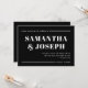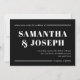 Estas invitaciones a la boda, simples pero para hacer declaraciones, incluyen un texto blanco y negrita moderno sobre un fondo negro oscuro minimalista, con líneas blancas que acentúan el diseño.