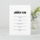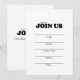 Invite a sus invitados con esta elegante invitación en negro y blanco. Fácil de usar plantilla para escribir a mano sus invitaciones. Utilice para cualquier ocasión o evento como bodas, aniversarios, cumpleaños y reuniones familiares. Invitación para todo propósito que hará que la planificación de su celebración sea fácil. Personalice aún más este diseño seleccionando el enlace "personalizar más" si lo desea, pero ¿por qué no mantenerlo simple?