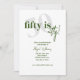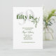 La tipografía negrita con caligrafía 50 es una invitación de cumpleaños elegante en verde y blanco. La parte trasera presenta un fondo completamente verde con manchas/burbujas blancas para emular las burbujas del vino y champán y celebrar cómo envejecemos como un buen vino. Todo el texto es completamente personalizable.
