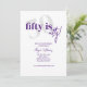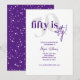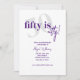 Tipografía en negrita con caligrafía 50 son invitaciones de fiesta de cumpleaños elegantes en morado y blanco. La parte trasera presenta un fondo completamente morado con manchas/burbujas blancas para emular las burbujas del vino y el champán para celebrar cómo envejecemos como un buen vino. Todo el texto es completamente personalizable.
