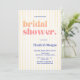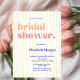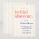 Esta simple y boho invitación a la ducha de novia presenta una tipografía retro con fondo de rayas amarillas. Estas invitaciones a la ducha de novias se personalizan fácilmente para tu evento simplemente añadiendo tus detalles.