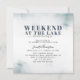 Disfrute de un impresionante fin de semana de solomillo en el lago con esta invitación rústica y moderna a la acuarela, el encabezado en grandes letras en negritas y caligrafía escrita a mano, el diseño está terminado al revés con un ahumado fondo azul marino con el itinerario de eventos del fin de semana. Personalice la información con los campos de plantilla proporcionados.