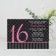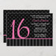 Una super tierna tira de polka rosa y negra dulce Sweet 16 cumpleaños invitación. personalizar fácilmente con la información de su fiesta.