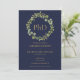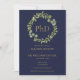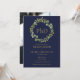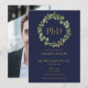 Con una elegante guirnalda botánica verde y tipografía dorada clásica sobre un fondo azul marino, esta elegante invitación de graduación de doctorado se puede personalizar con la foto de tu graduado en el reverso. Diseñado por Thisisnotme©