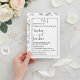 Haz una declaración audaz con esta Invitación de Boda Negra Moderna y Melancólica. Con un diseño llamativo de alto contraste, la parte frontal muestra tipografía blanca crujiente sobre un fondo negro profundo, enmarcado por un borde blanco clásico. La parte posterior presenta un delicado patrón de arte lineal floral en negro y blanco dibujado a mano, que agrega un toque de romance orgánico a esta sofisticada suite.