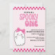 Presentamos nuestro "Spooky One Cute Ghost chica de la invitación al cumpleaños rosa" - la mezcla perfecta de adorable y espeluznante para la celebración de su hito! Esta invitación tiene un encantador personaje fantasma con una proa rosa en un suave tono rosa, diseñado para capturar el espíritu caprichoso de una fiesta de primer cumpleaños con un toque lúgubre y espeluznante
