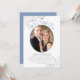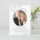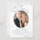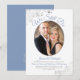 Esta hermosa invitación a la fiesta de renovación de votos/aniversario incluye un hermoso título de escritura que dice "Todavía lo hacemos". Tiene un diseño sencillo pero elegante con elegantes letras de guiones polvorientos azules o periwinkles sobre un fondo blanco clásico, y tu foto en un marco ovalado rodeada de ondulados rizos de Relieve metalizado gris plateado y remolinos. Gran manera de invitar a tu familia y amigos a celebrar tu amor.