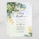 Invitación Todo en 1 verde Eucaliptus de oro deja Boda