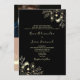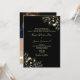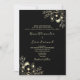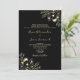 Elegante, moderno y rosa boho oro y negro todo en una sola invitación de matrimonio con código QR para RSVP, sitio web, foto de la pareja, encaje floral dorado y simple escritura caligráfica.