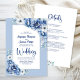 Invite a sus amigos y seres queridos a su boda para que presencie y celebre el comienzo de su viaje de toda la vida con esta elegante invitación floral azul. El texto del personalizable le permite añadir sin esfuerzo sus nombres, fecha de boda y los detalles necesarios de su celebración. Diseñado para una pareja de expertos en presupuesto, la ubicación de la recepción, la solicitud de respuesta de RSVP, los detalles del alojamiento y cualquier otra información que sus huéspedes puedan necesitar se pueden incluir en el reverso de esta invitación, ahorrando dinero en papel extra. Hay una variedad de tipos de papel y estilos de esquina disponibles para sus invitaciones únicas, junto con la opción de descargar.
