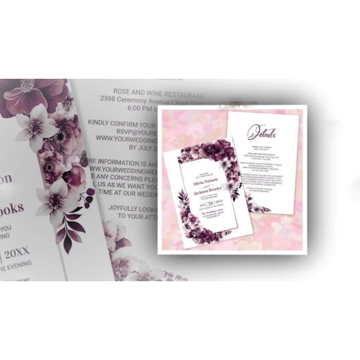 Invite a sus amigos y seres queridos a su boda para que presencie y celebre el comienzo de su viaje de toda la vida con esta invitación rosa y floral de ciruelas. El texto del personalizable le permite añadir sin esfuerzo sus nombres, fecha de boda y los detalles necesarios de su celebración. Diseñado para una pareja de expertos en presupuesto, la ubicación de la recepción, la solicitud de respuesta de RSVP, los detalles del alojamiento y cualquier otra información que sus huéspedes puedan necesitar se pueden incluir en el reverso de esta invitación, ahorrando dinero en papel extra. Hay una variedad de tipos de papel y estilos de esquina disponibles para sus invitaciones únicas, junto con la opción de descargar.