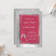 Todo en un Purpurina de plata magenta de moda Ombre Relieve metalizado Champagne Invitación a la Boda... Sobre un fondo de falso Relieve metalizado metálico plateado, nuestra elegante invitación a la boda "All in One" presenta un diseño sombrío purpurina plateado único mostrando tu texto de invitación en un marco de magenta color de moda del año junto a copas de champán plateadas que tocan los nupciales venideros. El oscuro purpurina de la invitación contiene todos los detalles que normalmente se verán en las tarjetas separadas del paquete boda. Esta moderna invitación a la boda fue diseñada para ser a la vez elegante y de bajo costo... por no hablar de ahorrar tiempo. Todo el texto de ejemplo se puede revisar fácilmente con su propia información sobre la plantilla de personalización.