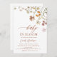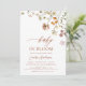 Celebra la llegada de un nuevo paquete de alegría con una hermosa ducha de bebé con temática Bloom. Únete a nosotros por una tarde llena de amor y felicidad mientras honramos a los futuros padres. La invitación incluye un impresionante texto naranja quemado en terracota, acentuado por una variedad de flores silvestres vibrantes.