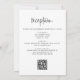 Simplifique la comunicación de su boda con nuestra invitación a la boda Minimalista con el código QR todo en uno. Esta innovadora invitación combina elegancia con comodidad moderna, con un sofisticado diseño minimalista y un código QR central. Simplemente escanee el código QR para acceder a todos los detalles esenciales, RSVP, y explore información adicional en el sitio web de su boda. El diseño es sobrio y refinado, ideal para las parejas contemporáneas que buscan una solución de invitación eficaz y de moda. Esta invitación, elaborada con atención a los detalles, no sólo minimiza el uso de papel, sino que también maximiza la facilidad de acceso a la información para sus huéspedes. Acepte el futuro de las invitaciones de boda con la invitación a la boda Minimalista con el código QR All-in-One, donde el minimalismo se une a la tecnología, creando una solución elegante y ecológica para compartir su día especial con sus seres queridos. Simplifique la experiencia boda tanto para usted como para sus huéspedes con esta invitación moderna y elegante.
