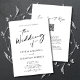 Todo en un código QR RSVP Invitación a la boda moderna moderna de caligrafía negra... Nuestra minimalista y moderna invitación a las bodas en blanco y negro "front and back" incluye un moderno guión de caligrafía combinado con el texto serif y sans serif para una invitación a las bodas simple y en moda. En la parte posterior de la invitación también se muestra el código QR de su sitio web boda, así como la propia dirección URL del sitio web, lo que permite a los invitados acceder fácilmente a RSVP en línea y ver todos los detalles enviados normalmente en un paquete boda. Esta invitación a la boda de estilo moderno fue diseñada para ser a la vez moderna y con un presupuesto adecuado, además de para ahorrar tiempo. El gráfico de código QR de ejemplo y todo el texto de ejemplo (aparte de los elementos caligráficos gráficos) se pueden revisar fácilmente con su propia información sobre la plantilla de personalización.