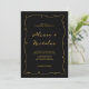 Esta invitación a la boda vintage es una opción fácil de usar para todo en uno, con una hermosa combinación de diseño en negro y oro. El elegante borde ondulado complementa el estilo del tipo de letra, creando un ambiente romántico y caprichoso. La tarjeta incluye los detalles del boda en la parte posterior y el diseño se ejecuta con gracia desde el borde hasta el guión.