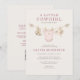 Invitación de baby shower de línea de ropa de vaquera todo en uno con adorables conjuntos de bebé western exhibidos en una encantadora línea de ropa. Diseñado en un diseño de doble cara frontal y posterior con arte coordinado en ambos lados. Perfecto para baby showers temáticos del oeste, celebraciones rústicas de campo y fiestas de vaquera bebé niña. Texto editable para una fácil personalización. Diseño listo para imprimir.