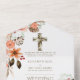 Flores color bonito y un tarro de albañil, cruz de oro en esta elegante invitación 3 en 1 Boda que incluye un rsvp desgarrador. Ideal para un boda católico.