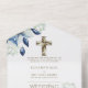 Flores color bonito y un tarro de albañil, cruz de oro en esta elegante invitación 3 en 1 Boda que incluye un rsvp desgarrador. Ideal para un boda católico.