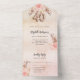 Invitación Todo En Uno 40 años pampas rosa de flores rosadas RSVP
