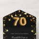 Un fondo negro, decorado con estrellas doradas y un gran número 70 en oro falso. Personalice y agregue un nombre, detalles del fiesta, fecha RSVP, dirección de devolución y nombre.