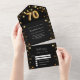 Invitación Todo En Uno 70.º cumpleaños estrellas de oro negro rsvp