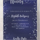 Un fondo azul marino, decorado con estrellas. El color azul es desigual. Personalice y agregue el nombre, los detalles del fiesta, la fecha RSVP, la dirección de devolución y el nombre. Noventa está escrito con corazón.