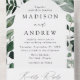 Invitaciones bodas botánicas y modernas, con detalles bodas dentro de un marco arcaico rodeado de eucalipto, helechos y otros ricos paisajes. Personalice la invitación de boda todo en uno con los detalles del boda, como sus nombres, fecha de boda, información del lugar, fecha de respuesta, opciones de comida, etc. Diseñado para coordinar con nuestra colección Abundant Greenery boda.