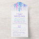 Invitación Todo En Uno Acuarela enredadera azul rosa púrpura comida RSVP
