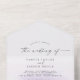 Este moderno boda de acuarelas violetas, todo ello en una sola invitación, es perfecto para un boda contemporáneo y elegante. La colección de diseño minimalista, clásico y elegante presenta trazos de pincel de color agua en tonos bonito. Escriba a mano las direcciones de los invitados en la parte posterior de la invitación plegada o compre los pegatinas de las etiquetas de direcciones de los invitados coordinadores (se venden por separado).