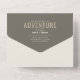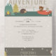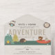 Una nueva aventura espera un diseño moderno que incluye animales de bosque y elementos de camping en colores de moda como la marina y el verde. Este diseño incluye una predicción de lágrimas para la tarjeta de bebé que su huésped le devolverá.