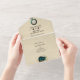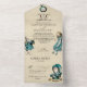 Invitación Todo En Uno Alicia Verde azulada de oro vintage en Boda de Mar