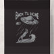 alienígena ufo surfeando ilustracion con letras de regreso a casa en blanco y negro