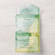 Boda Todo en Uno - Un toque brillante y alegre de manchas de tinta alcohólica en tonos de amarillo limón, verde pera y verde menta se utilizan para crear esta invitación de boda abstracta moderna en amarillo limón y verde. Cada sección resaltada con una superposición blanca transparente enmarcada en dorado, para un atractivo esotérico soñador: un hermoso diseño abstracto moderno para una invitación de boda todo en uno que incluye una tarjeta de respuesta de elección de comida pre-dirigida y desmontable para que sus invitados puedan enviarla fácilmente por correo: una impresionante invitación de boda todo en uno. Plantilla fácil de personalizar.