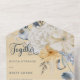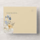 NOTA: EL DISEÑO ORIGINAL DE ESTA INVITACIÓN NO TENÍA UN CAMPO DE DIRECCIÓN DE RETORNO PARA PERSONALIZARLA. ESO SE HA CORREGIDO CON ESTE DISEÑO. Este bonito diseño está decorado con flores polvorientas azules, amarillas pálidas y blancas sobre un suave fondo amarillo. Las invitaciones todo en uno personalizadas son una combinación única de una invitación personalizado bien impresa y una postal RSVP fácil de desgarrar. ¡Y son tan fáciles de usar! Simplemente se pliega, después sella la solapa de atrás con los tres pegatinas claros incluidos y el correo. Y cuando sus invitados reciben la invitación de su personalizado, ¡simplemente sacan la tarjeta RSVP perforada y la envían de vuelta al correo!