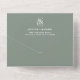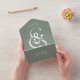 Este boda único y moderno, con una sola invitación, presenta una impronta blanca y audaz sobre un fondo verde sabio, con un diseño de texto sencillo y creativo que sin duda destacará.