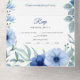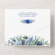 Invitaciones de boda con flores de anemone en tonos de azul marino y azul claro con tallos, bayas y follaje a juego. La respuesta RSVP está perforada para que sea fácil arrancarla y enviarla de vuelta. La postal tiene el tamaño correcto para enviar a través de USPS a la tarifa de franqueo más baja, y la solapa trasera que se superpone a la postal es lo suficientemente grande como para cubrir las secciones de dirección de devolución y sello para evitar confusiones al enviar. Personalice con su propia información. Si necesita ayuda con esta invitación o tiene solicitudes personalizadas con las que necesito su ayuda, no coloque este artículo en su carrito. En su lugar, envíe un correo electrónico con su solicitud a shutterbug600@yahoo.com. Nota: Solo puedo ayudar con el diseño, todo el envío e impresión es manejado por Zazzle y las preguntas relacionadas con su pedido deben dirigirse al soporte de Zazzle: SOPORTE: https://help.zazzle.com/hc/en-us/articles/221463567-How-Do-I-Contact-Zazzle-Customer-Support-. No tengo acceso a su cuenta y no puedo hacer cambios una