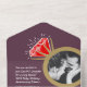 Esta invitación para la cena de celebración del 40º aniversario de boda tiene un RSVP desmontable para que pueda ser sellada, por lo que no se requiere sobre. Invitaciones de aniversario de boda con gema roja rubí en un gráfico de anillo de oro, personalice con los detalles de su fiesta de aniversario de boda y opciones de comida de respuesta, así como incluyendo dos fotos de la pareja de celebración del aniversario. Facilite a usted y a sus invitados el envío, ya que no se requiere sobre, simplemente escriba a mano en sus invitaciones selladas y sus invitados pueden responder con el RSVP desmontable para obtener respuestas rápidas y fáciles de comida de los invitados. Ideal para un evento de comida formal. El cuadragésimo aniversario de boda está asociado con la gema rubí. Otros artículos coincidentes están disponibles. Gráficos y diseño de Sarah Trett para www.mylittle