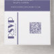 Eleva tu boda con nuestra invitación a la boda blanca y púrpura moderna, con fuentes modernas y elegantes, llamativos anillos de boda y tu foto favorita. Esta invitación "todo en uno" incluye un cómodo código QR que guía a sus invitados a RSVP online, eliminando la necesidad de tarjetas RSVP tradicionales. Diseñado con materiales de alta calidad, personalizarlos con sus detalles únicos y disfrutar de un fácil montaje y envío de correo. Haga que su boda sea memorable de principio a fin; explore nuestra colección de Bodas con temas morados y blancos hoy mismo.