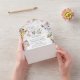 Invite a sus amigos y familiares con estilo y establezca el tono de su día especial con esta encantadora invitación a la ducha de bebé. El diseño incluye animales de la selva (jirafa, cebra, león, elefante, chita, rinoceronte), flores de hibisco y hojas de eucalipto sobre fondo blanco.
