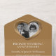 Diseño de invitación para una fiesta de aniversario de bodas de bronce con un porta retratos, tarjeta de respuesta desmontable y sin necesidad de sobres. Un hermoso efecto de bronce líquido en forma de corazón impreso en gráficos. Invitaciones para el 8º aniversario de bodas, personalizables con los detalles de su fiesta de aniversario y una foto de la feliz pareja. El octavo aniversario de bodas se asocia tradicionalmente con el bronce y el corazón simboliza el amor. Otros artículos a juego están disponibles. Gráficos y diseño de Sarah Trett para www.mylittleeden.com y www.mylittleedenweddings.com