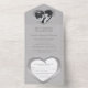 Diseño de invitación para una fiesta de aniversario de bodas de estaño con un porta retratos, tarjeta de RSVP desmontable y sin necesidad de sobres. Efecto de estaño en relieve con gráficos impresos en forma de corazón para invitaciones de aniversario de bodas de 10 años, personalizables con los detalles de su fiesta de aniversario y una foto de la feliz pareja. El décimo aniversario de bodas está tradicionalmente asociado con el estaño y el corazón simboliza el amor. Otros artículos a juego están disponibles. Gráficos y diseño de Sarah Trett para www.mylittleeden.com y www.mylittleedenweddings.com