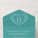 Evento de cumpleaños de aniversario de bodas número 11 de Turquesa, invitaciones RSVP desmontables. Hermoso efecto de cuentas de turquesa en forma de corazón impreso en gráficos, invitaciones para el undécimo aniversario de bodas, personalice con los detalles de su fiesta de aniversario de bodas, una foto de la feliz pareja, haga que los invitados utilicen el rsvp fijando un sello o devolviendo el formulario lleno a través de su correo electrónico, ideal para facilitar las respuestas. El aniversario número 11 está asociado con la piedra preciosa turquesa y el corazón simboliza el amor. Gráficos y diseño de Sarah Trett para www.mylittleeden.com