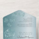 Invitación Todo En Uno Aqua D20 | Elegante Boda de dados de RPG verde azu