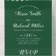 Árboles y luces de cuerdas en invierno verde esmeralda todo en una invitación a la boda. Cuenta con árboles blancos y luces de cuerda en verde esmeralda. Los nombres están en la tipografía del guión y se puede desprender la tarjeta RSVP.