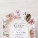 Hermosa invitación de boda con marco dorado arqueado adornado con flores silvestres de acuarela en colores pastel y joya. Escribe a mano las direcciones de los destinatarios o usa etiquetas en la parte posterior de la invitación. Ponte en contacto conmigo si necesitas ayuda.