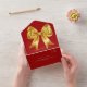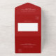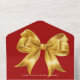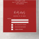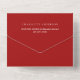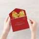 Un fondo rojo, decorado con un gran arco dorado. Personalice y agregue nombres, detalles del fiesta, fecha RSVP, dirección de devolución y nombre.