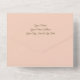 Transportar a sus invitados a un paraíso de amor y celebración con esta invitación unitaria única y cautivadora. Los tonos cálidos y los detalles delicados crean una atmósfera de romanticismo y sofisticación, lo que crea el tono perfecto para su día especial. Las invitaciones de boda todo en uno son hermosas y prácticas al combinar la invitación de boda con una postal RSVP fácil de quitar perforada. También son rápidos y fáciles de preparar para el correo. Simplemente dirija la invitación, doble el pliegue trasero y selle con los pegatinas claros incluidos. Una vez que sus invitados reciben la invitación, simplemente rompen la tarjeta RSVP perforada y la tiran por correo. La adición del código QR permite a los clientes acceder fácilmente a la página web de su boda para obtener información, incluyendo detalles de recepción y opciones de cena. Simplemente reemplace la dirección URL de ejemplo con la dirección URL del sitio web de su boda.